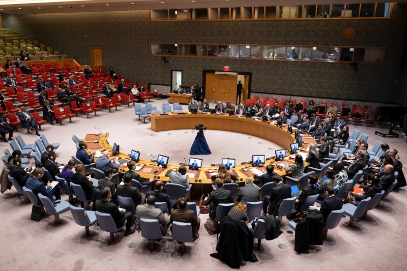 這是1月3日在位于紐約的聯(lián)合國總部拍攝的安理會關于紅海局勢緊急公開會現(xiàn)場。新華社發(fā)(聯(lián)合國供圖/曼努埃爾·埃利亞斯攝)