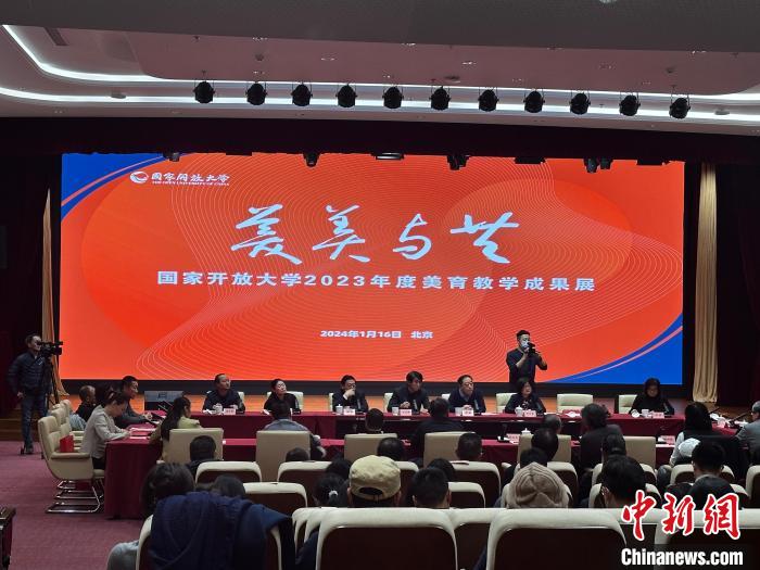 中新網(wǎng)北京1月16日電(謝雁冰)“美美與共”國家開放大學(xué)2023年度美育教學(xué)成果展16日在五棵松校區(qū)開幕,多位藝術(shù)名家出席活動。