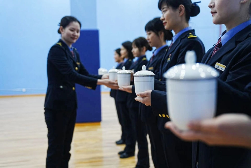 1月12日,鐵路客運服務(wù)人員在合肥火車站進行服務(wù)禮儀培訓(xùn),為即將到來的春運做好準(zhǔn)備。新華社記者 杜宇 攝