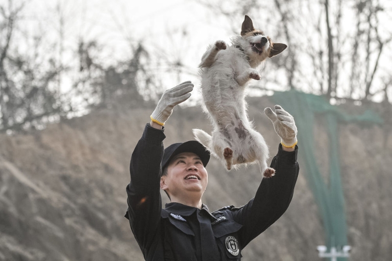 1月10日,湖北省黃石市公安局刑偵支隊警犬訓(xùn)練大隊對警犬開展強化訓(xùn)練,為即將到來的2024春運安全保障工作做好準(zhǔn)備。這是訓(xùn)導(dǎo)員和警犬“杰克”在訓(xùn)練間隙玩耍。新華社記者 伍志尊 攝