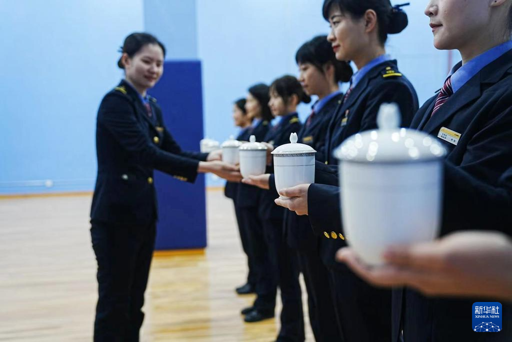 1月12日,鐵路客運(yùn)服務(wù)人員在合肥火車站進(jìn)行服務(wù)禮儀培訓(xùn)。(圖源:新華社)