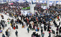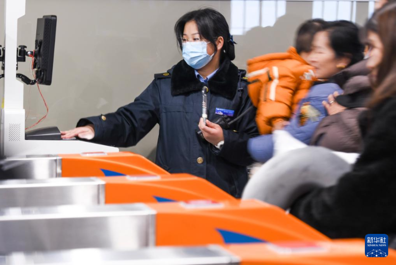 1月17日,在烏魯木齊站,鐵路工作人員在引導(dǎo)乘客有序進(jìn)入候車大廳。