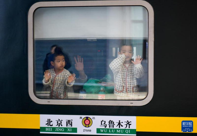 1月11日,兩名小乘客在Z70次列車上等待發(fā)車時(shí)向窗外張望。