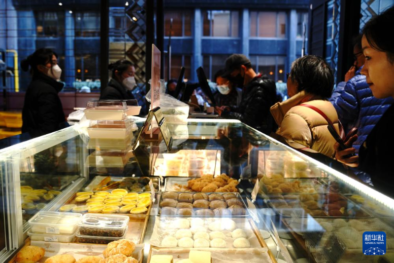 1月17日,消費(fèi)者在上海黃河路購(gòu)買糕點(diǎn)。