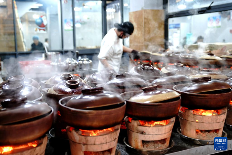 1月17日,人們?cè)谏虾|S河路一家店里品嘗美食。