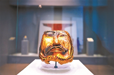 ▲鑲嵌紅寶石的黃金面具