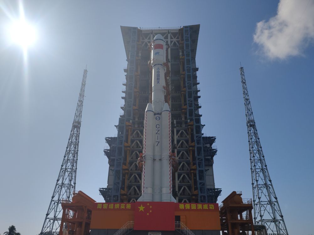 1月15日,天舟七號貨運飛船與長征七號遙八運載火箭組合體垂直轉(zhuǎn)運至發(fā)射區(qū)。(圖源:新華社)