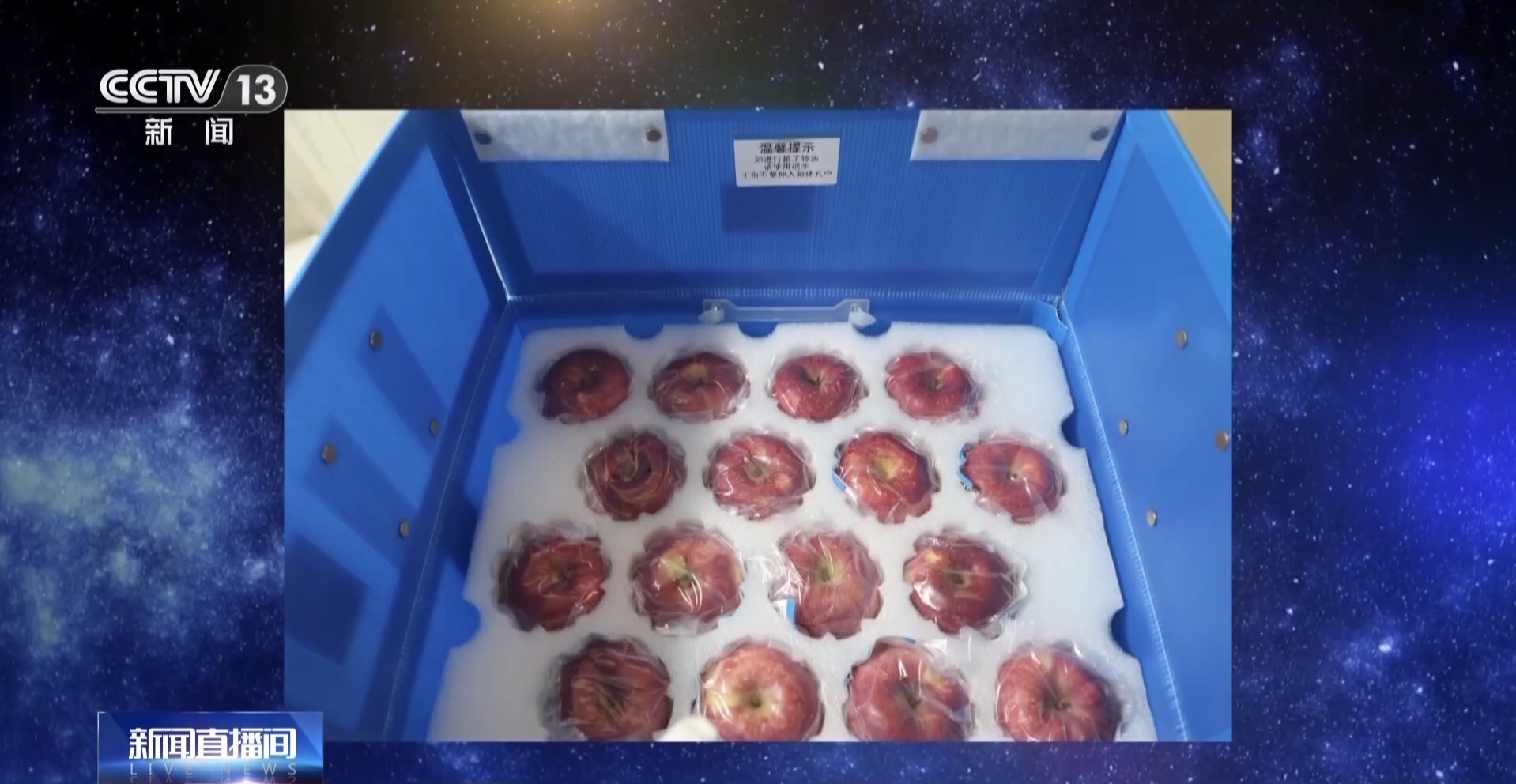 此次天舟七號攜帶新鮮水果將近90公斤,比天舟六號增加了近30公斤。(圖源:央視新聞)