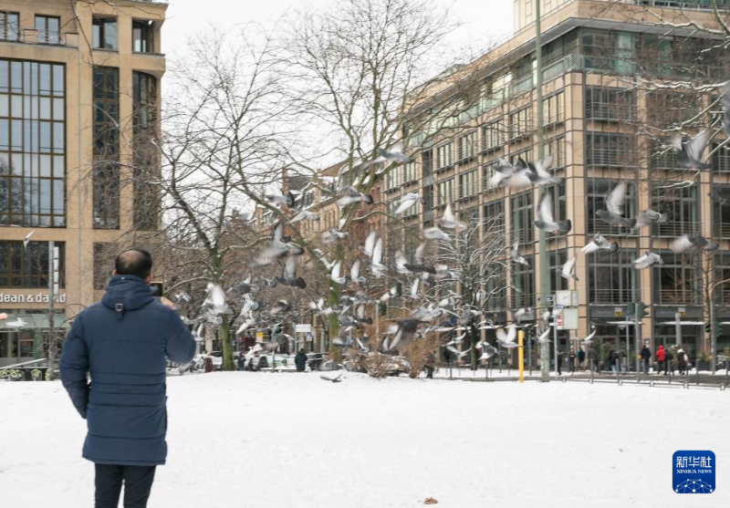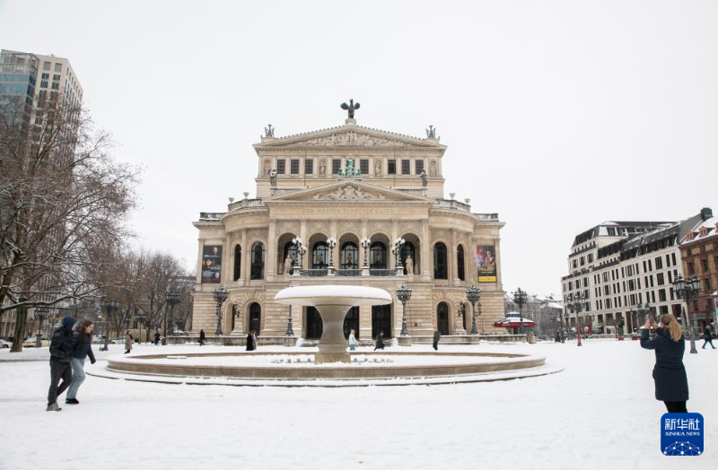 受寒流影響,德國法蘭克福18日迎來降雪。