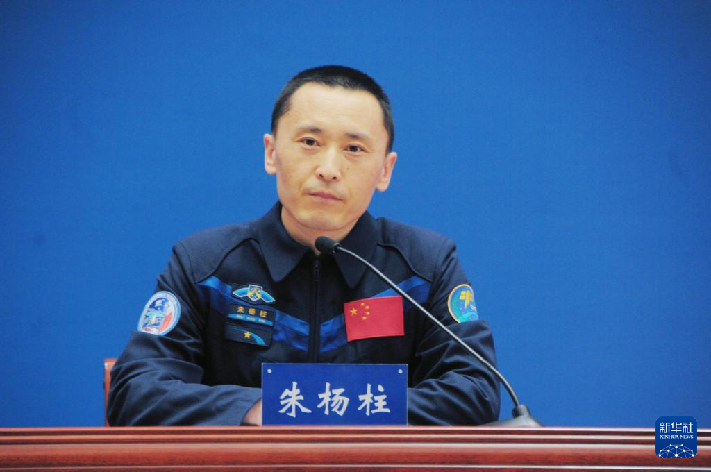 1月19日,神舟十六號航天員朱楊柱在記者見面會上回答記者提問。