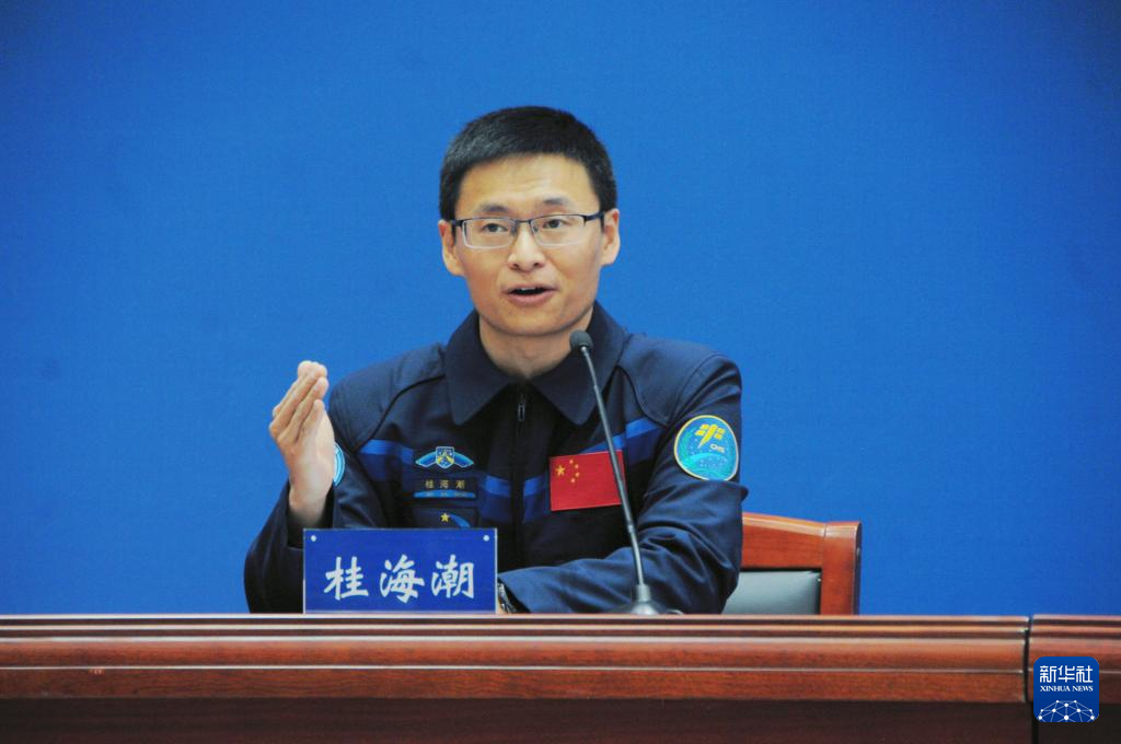 1月19日,神舟十六號航天員桂海潮在記者見面會上回答記者提問。
