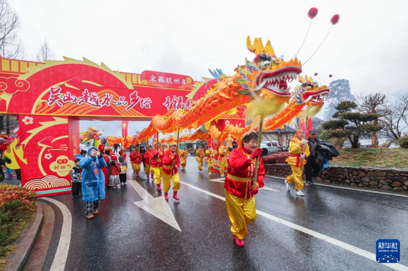 當(dāng)日,集年俗美食、旅游觀光、文化感受為一體的“吳山越水品鄉(xiāng)俗·幸福來臨慶新春”臨安區(qū)第二屆年俗文化旅游節(jié)在浙江省杭州市臨安區(qū)太湖源鎮(zhèn)指南村村落景區(qū)開幕。本次年俗節(jié)從農(nóng)歷臘月初十開始,在臨安各個(gè)鄉(xiāng)村設(shè)置極具地方特色的“年俗集市”,展示傳統(tǒng)年俗文化,在指南村的各個(gè)村落景點(diǎn)開展形式多樣的年俗活動(dòng),讓游客在臨安傳統(tǒng)山鄉(xiāng)感受傳統(tǒng)民俗年味,領(lǐng)略民俗文化,迎接即將到來的新春佳節(jié)。新華社記者 徐昱 攝