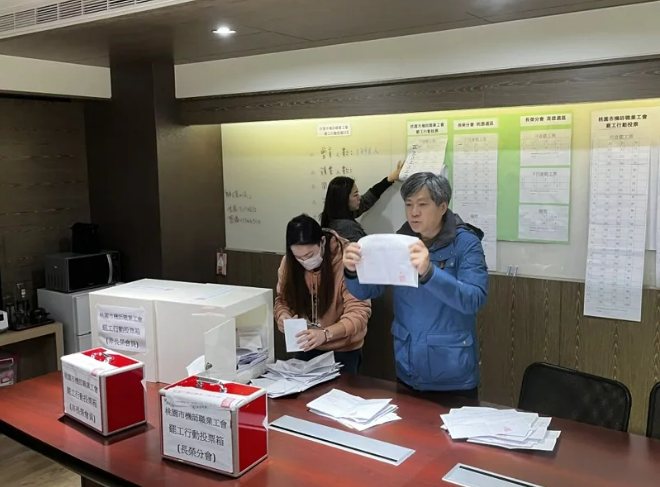 桃園市機師工會今天上午9點,在桃園市勞動局代表見證下,針對長榮分會與長榮航空公司間勞資爭議的罷工投票進行開票。(記者朱冠諭/攝影,臺灣“聯(lián)合新聞網(wǎng)”)