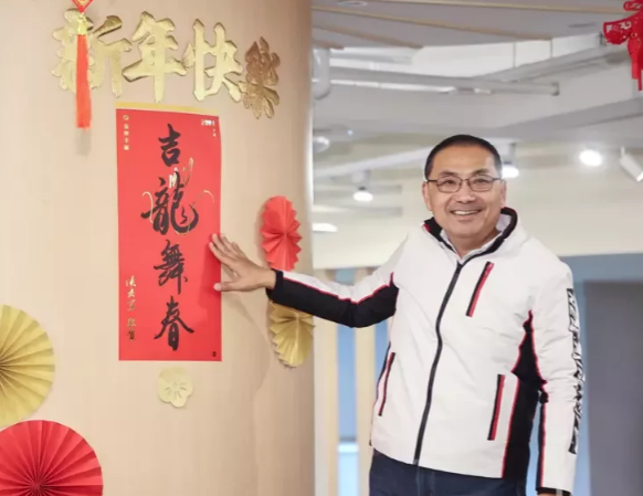 新北市長侯友宜上午公布新北市政府龍年春聯(lián)“吉龍舞春”。(記者曾原信/攝影,臺灣“聯(lián)合新聞網(wǎng)”)