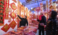 1月22日,市民在河南省濟源市一家集貿(mào)市場選購春節(jié)飾品。