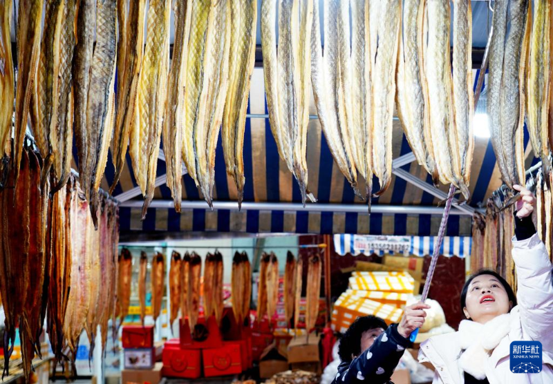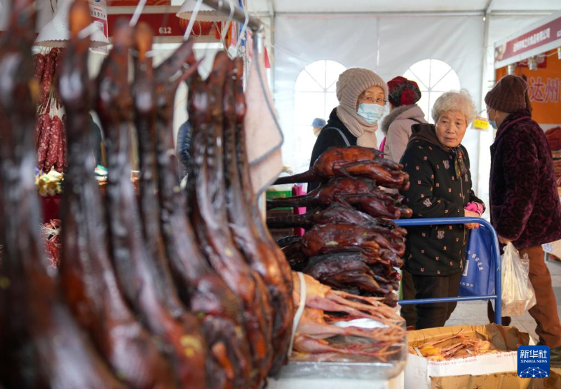 1月22日,人們在山東省青州市云門山街道一家集貿(mào)市場上選購年貨。