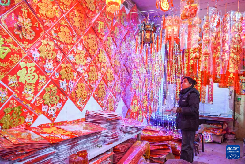 1月22日,在貴州省黔南布依族苗族自治州都勻市,市民選購春節(jié)飾品。
