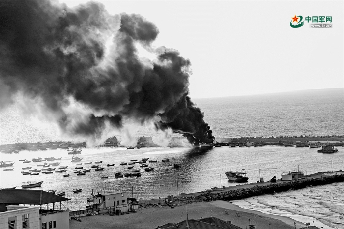 新一輪巴以沖突中,加沙城港口遭以色列襲擊后升起濃煙。