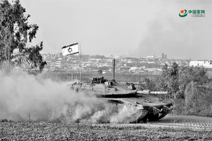 近日,一輛以軍坦克行駛在以色列與加沙地帶交界地區(qū)。