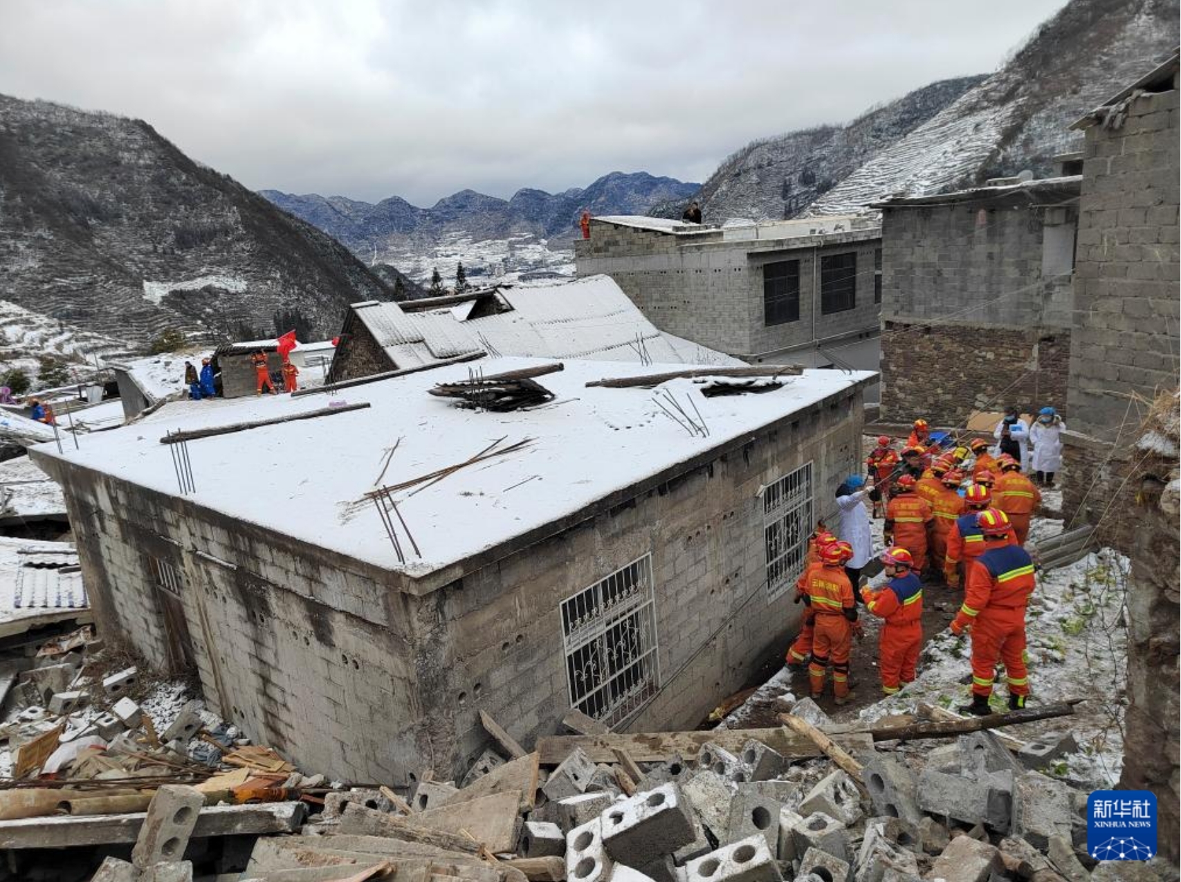 1月22日在云南省昭通市鎮(zhèn)雄縣塘房鎮(zhèn)涼水村拍攝的救援現(xiàn)場。新華社發(fā)