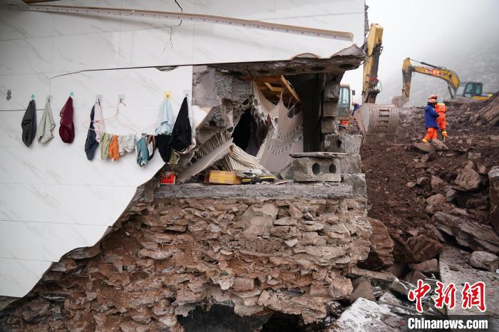 1月23日,云南省昭通市鎮(zhèn)雄縣塘房鎮(zhèn)涼水村山體滑坡現(xiàn)場被損壞的房屋。中新社記者 劉冉陽 攝