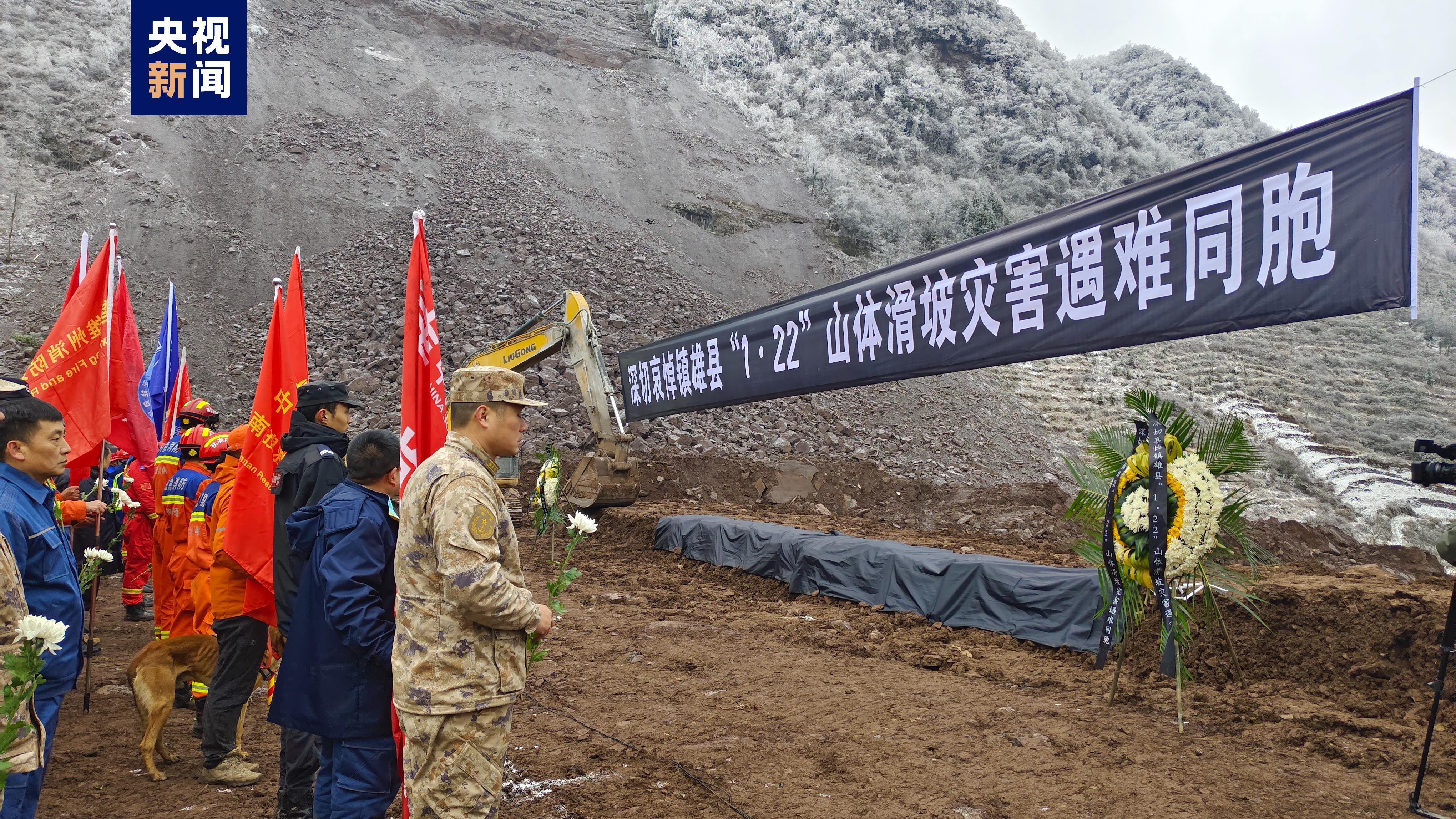 1月26日上午,深切哀悼云南鎮(zhèn)雄縣“1·22”山體滑坡災(zāi)害遇難同胞儀式在塘房鎮(zhèn)涼水村山體滑坡現(xiàn)場舉行。