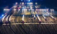 1月26日凌晨,動(dòng)車(chē)組列車(chē)停靠在南京動(dòng)車(chē)段南京南動(dòng)車(chē)運(yùn)用所存車(chē)線(xiàn)上(無(wú)人機(jī)照片)。