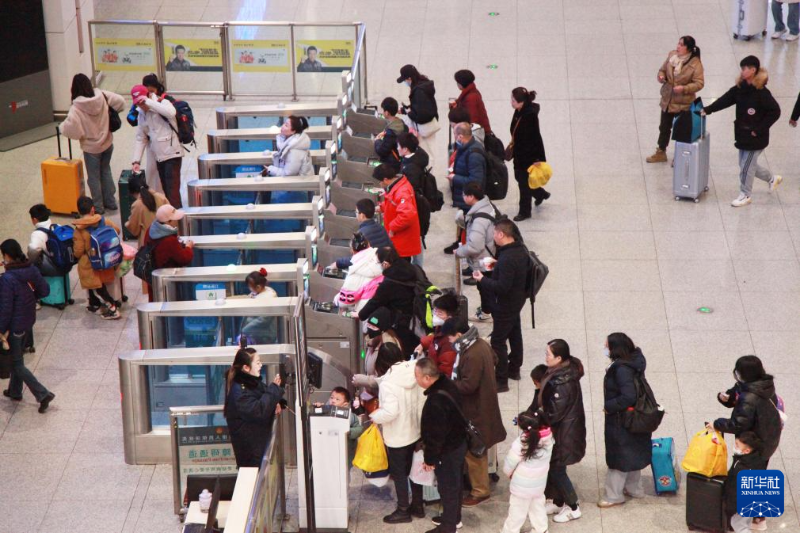 1月26日,旅客在徐州東站排隊(duì)檢票乘車(chē)。