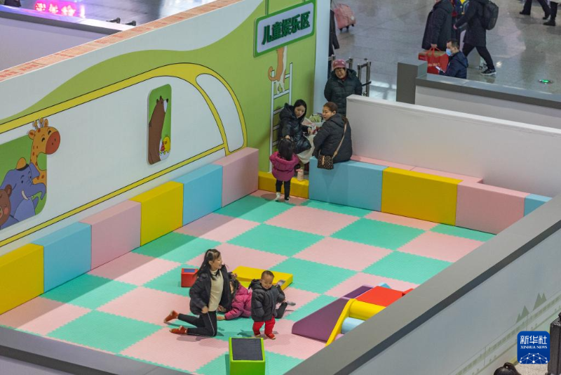 1月26日,在重慶北站候車(chē)大廳,小朋友在兒童娛樂(lè)區(qū)玩耍。