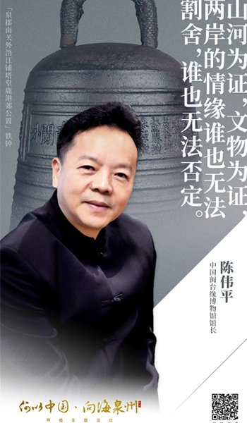 1月28日晚,由中央網(wǎng)信辦、國家文物局、人民日報(bào)社、福建省委網(wǎng)信委指導(dǎo),中央網(wǎng)信辦網(wǎng)絡(luò)傳播局、國家文物局相關(guān)司局、福建省委網(wǎng)信辦、福建省文物局以及人民網(wǎng)等部門聯(lián)合主辦的“何以中國·向海泉州”網(wǎng)絡(luò)主題活動(dòng)在泉州舉行?;顒?dòng)現(xiàn)場,作為講述嘉賓之一,中國閩臺緣博物館館長陳偉平分享了自己見證的閩臺緣、兩岸情。
