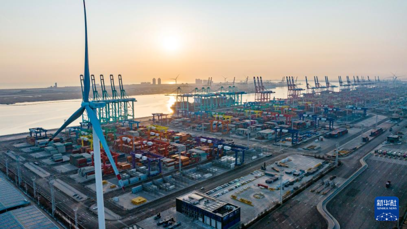 與此同時,天津港致力于打造世界一流的智慧港口、綠色港口。2021年,天津港投產運營全球首個“智慧零碳”碼頭,在全國率先設立港口自動駕駛示范區(qū),電力供應全部來自風能和太陽能。目前,天津港年綠電發(fā)電能力約1億千瓦時,每年二氧化碳減排超過9萬噸。