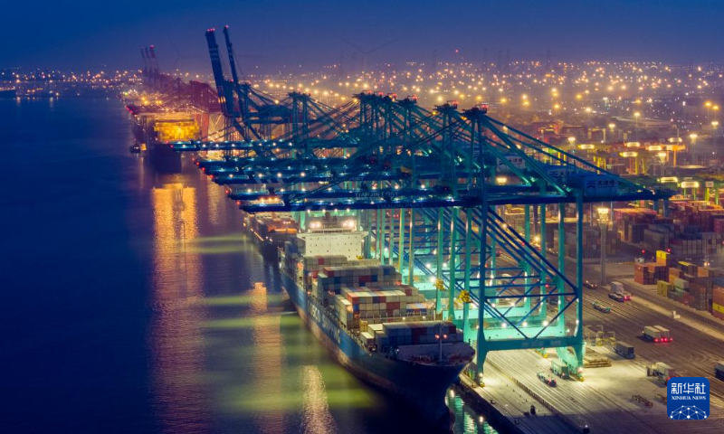 這是2月3日拍攝的天津港集裝箱碼頭(無人機照片)。