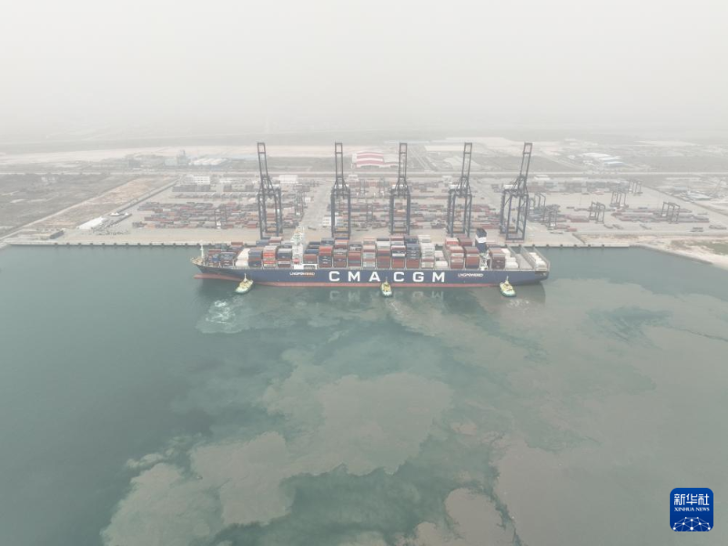 1月29日,法國達(dá)飛海運(yùn)集團(tuán)一艘大型集裝箱貨輪緩慢??吭谀崛绽麃喞魉怪萑R基港。