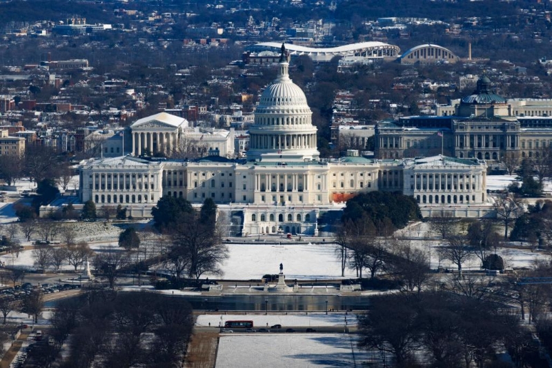 這是1月17日在美國首都華盛頓拍攝的雪后的國會大廈。新華社發(fā)(亞倫 攝)
