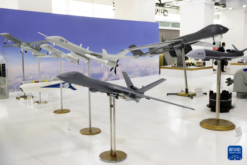 這是2月5日在沙特阿拉伯利雅得拍攝的防務展上的無人機模型。新華社記者 王東震 攝