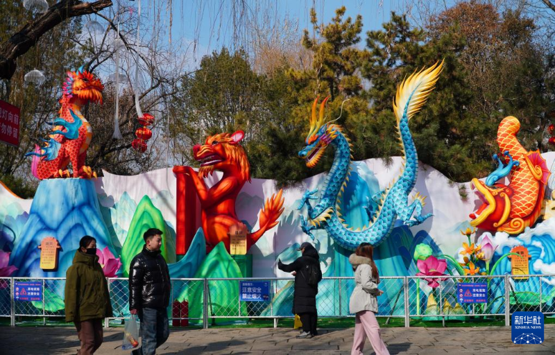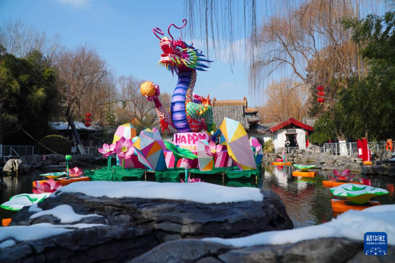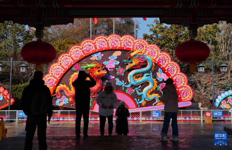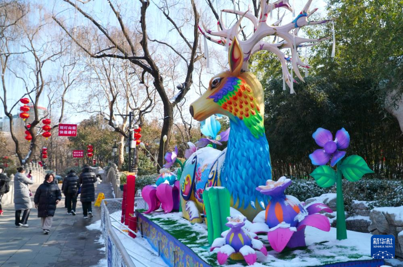 春節(jié)臨近,山東省濟南市在天下第一泉風景區(qū)內布置了多組大型花燈和眾多的彩燈裝飾,吸引不少市民和游客前來觀賞。