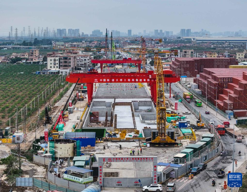 南珠(中)城際十涌站車站和盾構(gòu)井施工現(xiàn)場(2月5日攝,無人機(jī)照片)。