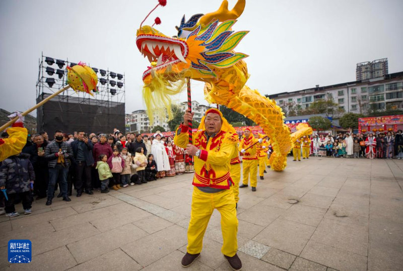 2月5日,人們?cè)谫F州省綏陽縣舞龍迎接龍年春節(jié)的到來。