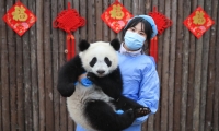 2月6日,市民在莘莊燈會上游玩賞燈。