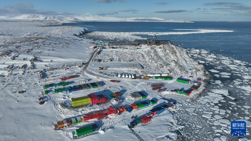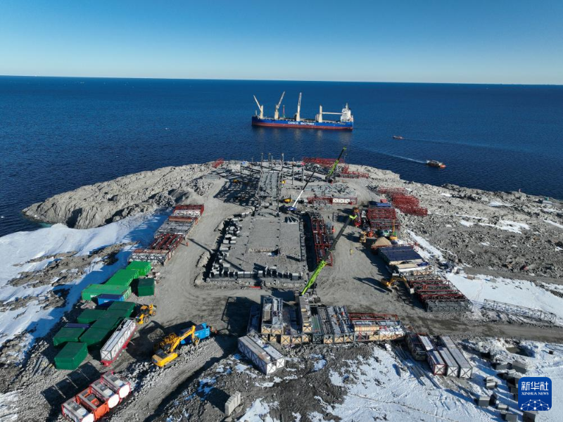 2024年1月25日拍攝的中國(guó)南極秦嶺站建設(shè)現(xiàn)場(chǎng)(無(wú)人機(jī)照片)。