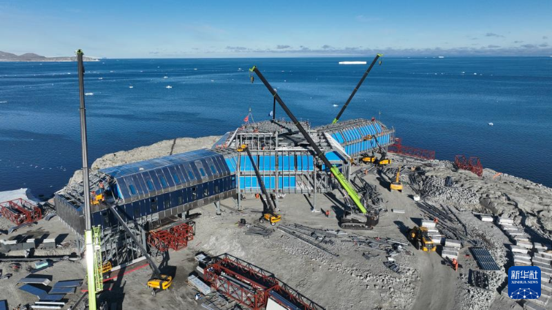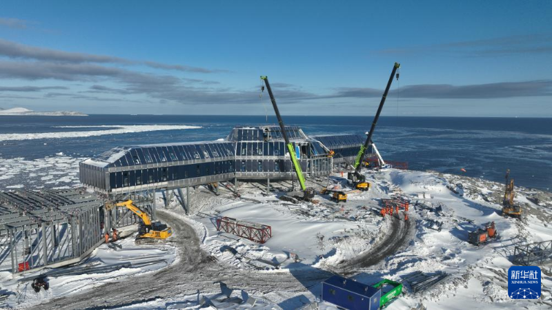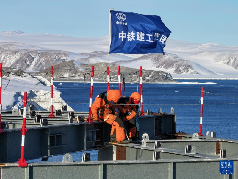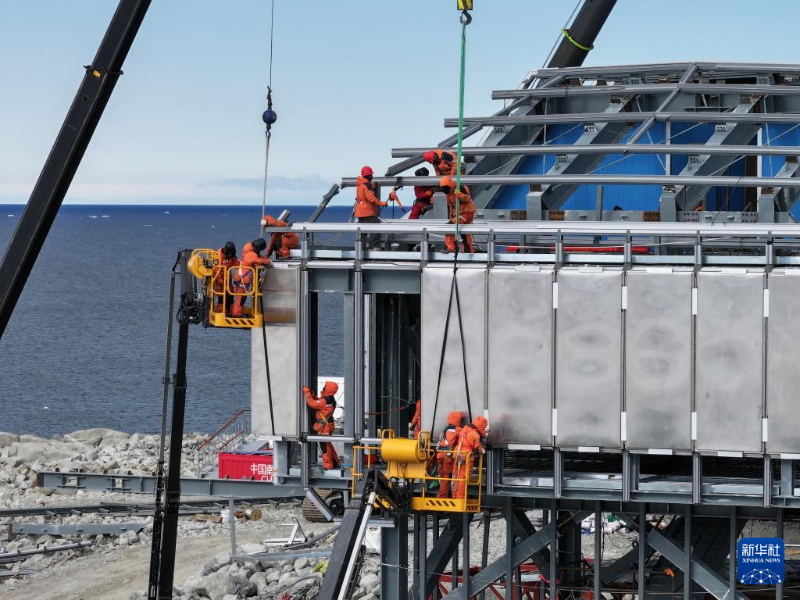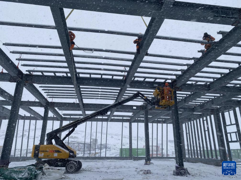 2024年1月4日,中國(guó)第40次南極考察隊(duì)員在安裝主樓鋼結(jié)構(gòu)。