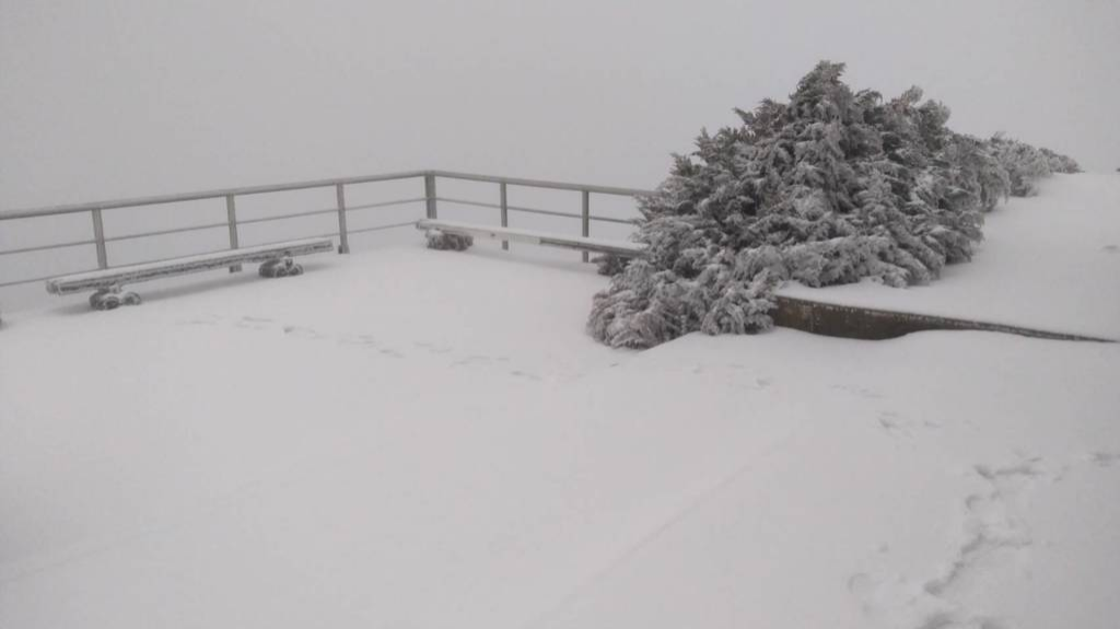 氣象部門表示,強(qiáng)烈大陸冷氣團(tuán)發(fā)威,玉山目前持續(xù)下雪中,從昨夜下到現(xiàn)在,氣溫零下1.8度,積雪5公分。從照片可以看到,玉山氣象站一夜變成銀白世界,早上風(fēng)大又下雪,整個玉山霧茫茫一片。
