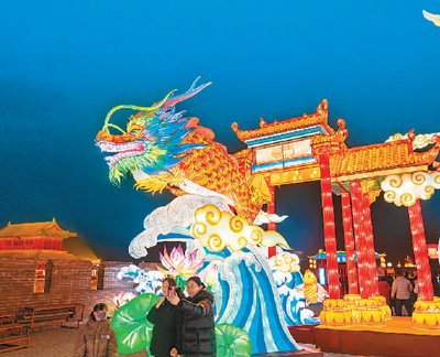??游客在河南省洛陽(yáng)市2024隋唐河洛文化廟會(huì)上欣賞新春燈展。黃政偉攝(人民圖片)