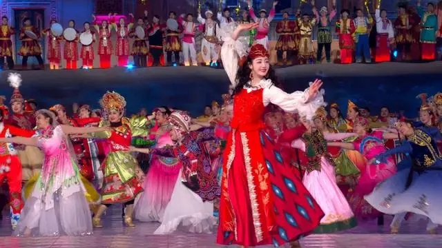 一座座屋頂,上演一場場熱烈的民族歌舞,夜幕下的喀什古城化作歡樂的節(jié)慶海洋,像新疆的石榴花一樣綻放的迪麗熱巴,美出了新境界。