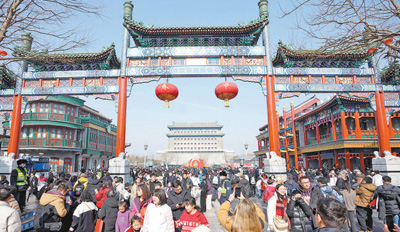 大年初四,市民和游客在北京前門大街游覽。新華社記者 王毓國攝