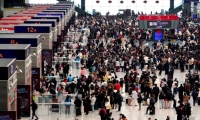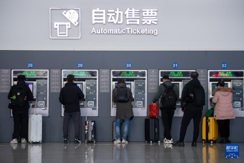 這是2月17日拍攝的杭州東站自動售票處。