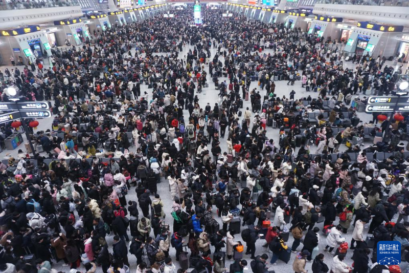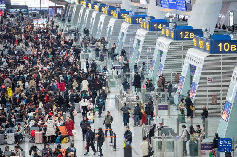 2月17日,旅客在安徽阜陽西站等待檢票。
