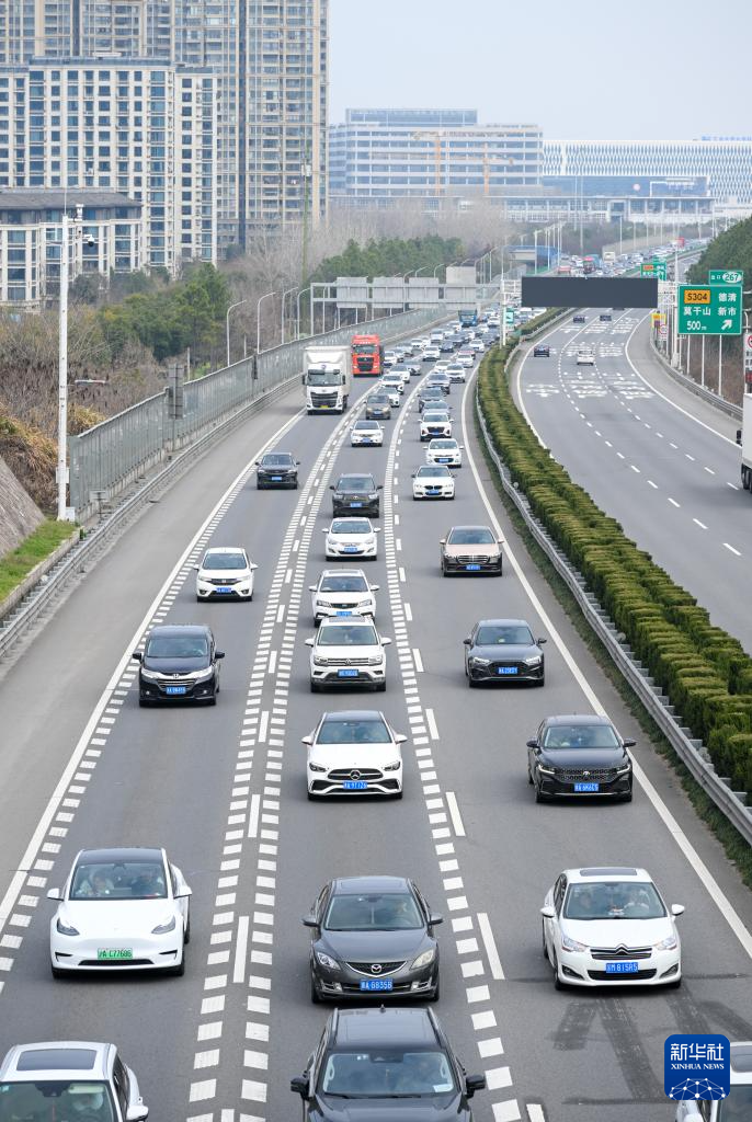 2月17日,浙江省湖州市杭寧高速德清段杭州方向,車輛在高速公路上緩慢行駛。