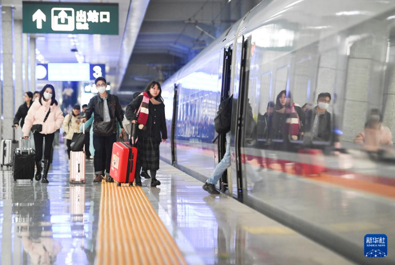 2月17日,旅客在南京火車站下車出站。