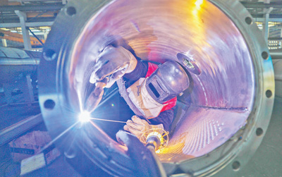 2月18日,浙江省湖州市德清縣鐘管鎮(zhèn)南舍工業(yè)園區(qū)內(nèi),一家機械設(shè)備生產(chǎn)企業(yè)的工人在車間內(nèi)忙碌。王 正攝(新華社發(fā))